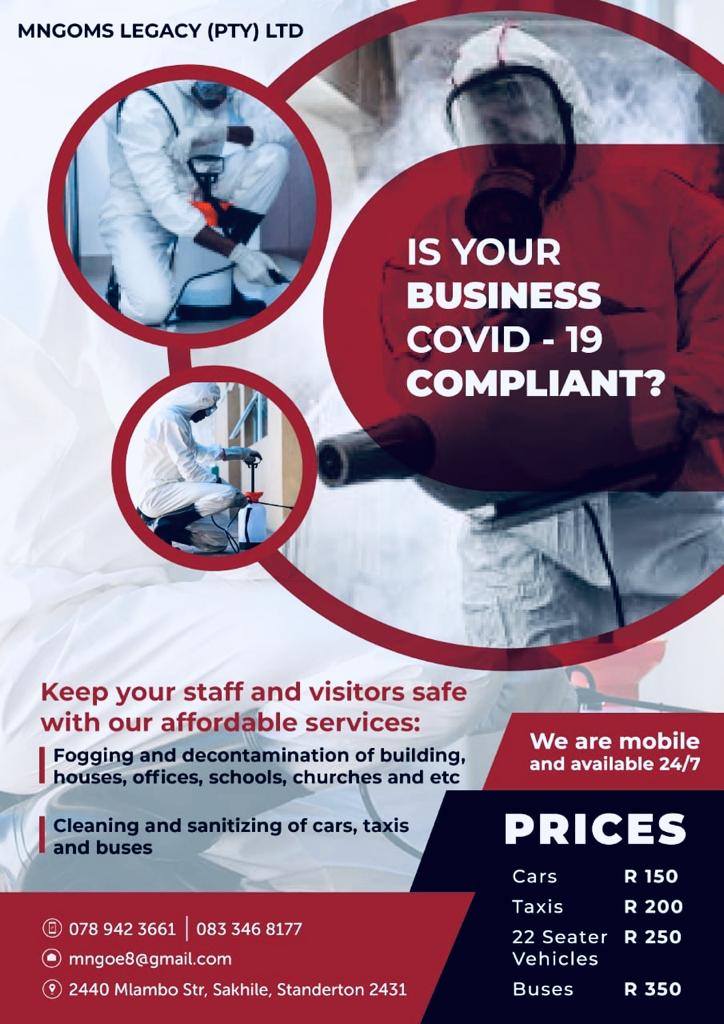 Furthermore, we are also not limited to the cleaning and sanitizing of cars, taxis and buses.